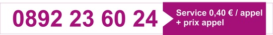 Le coût de la communication 0,40 €/min ou 0,60€/min sera prélevé sur votre facture de téléphone